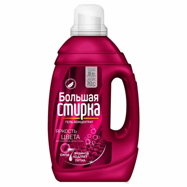 Гель для стрики Большая стирка "Яркость цвета" 1,2 л для цветного белья